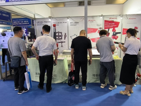 本次展會,鴻華科技有限公司全方位展示了法國科瑞朗KREON關節臂三坐標測量機、思看科技全能型自動化三維測量平臺、彩色三維掃描儀、霍梅爾HOMMEL便攜式粗糙度儀等高科技產品。為便于現場客戶及合作伙伴近距離、多角度參觀、了解我們的展出設備,我們在展示創意方面不斷創新,現場展示IREAL彩色三維掃描儀掃描專業真人模特,帶給觀展客戶不一樣的觀展體驗和收獲。