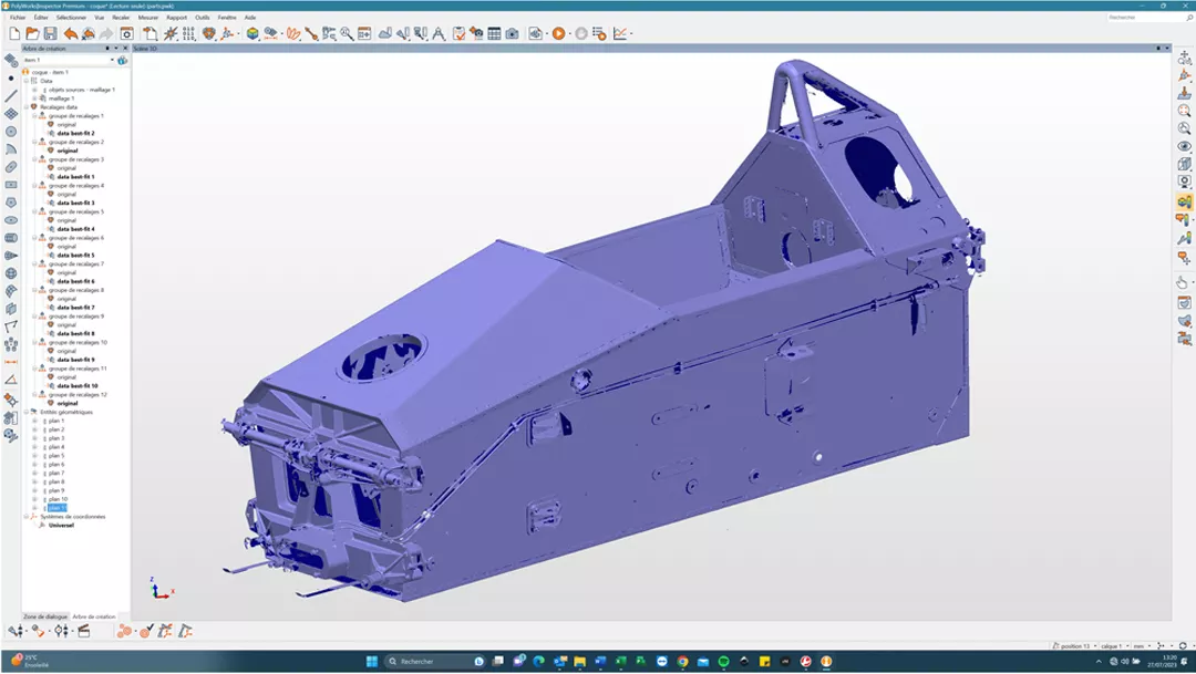 “如果表面上出現(xiàn)孔洞,借助多邊形掃描功能,您只需重新掃描孔洞即可。同時,借助PolyWorks中的選擇工具,我們可以刪除支撐、“清理”像素等。我們以前使用的軟件解決方案的服務(wù)提供商總是向我們收取“清理”部件的費用,然后再收取“清理”掃描的費用。Laurent先生說“過去需要半天甚至一整天來完成掃描的零件,現(xiàn)在只需半小時或最多一小時就能完成掃描”,他特別強調(diào)說,即使是鋁制底盤,或者亮黑色、鍍鉻的零件也能輕松完成掃描。